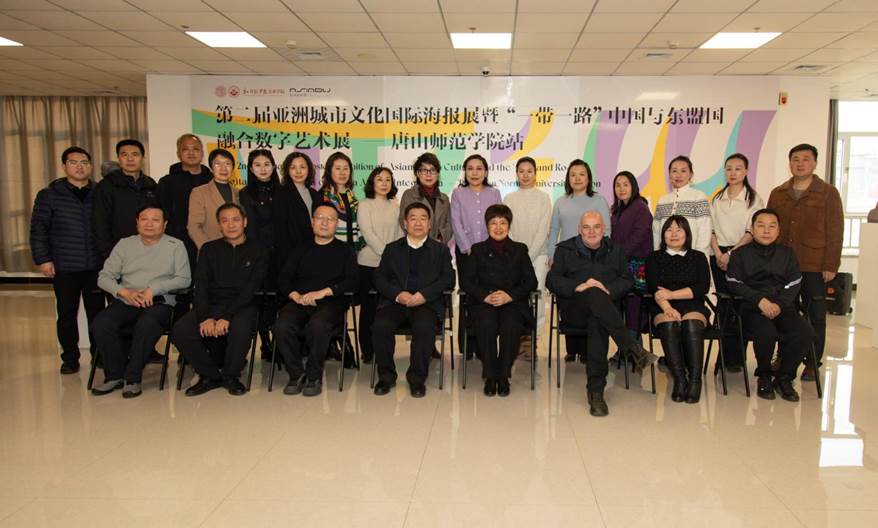 2025年12月22日下午,第二届亚洲城市文化国际海报展暨“一带一路”中国—东盟融合数字艺术展于唐山师范学院隆重开幕。院长曹荣,党委常委、副院长安文忠出席开幕式。开幕式由美术学院院长高一帆主持。